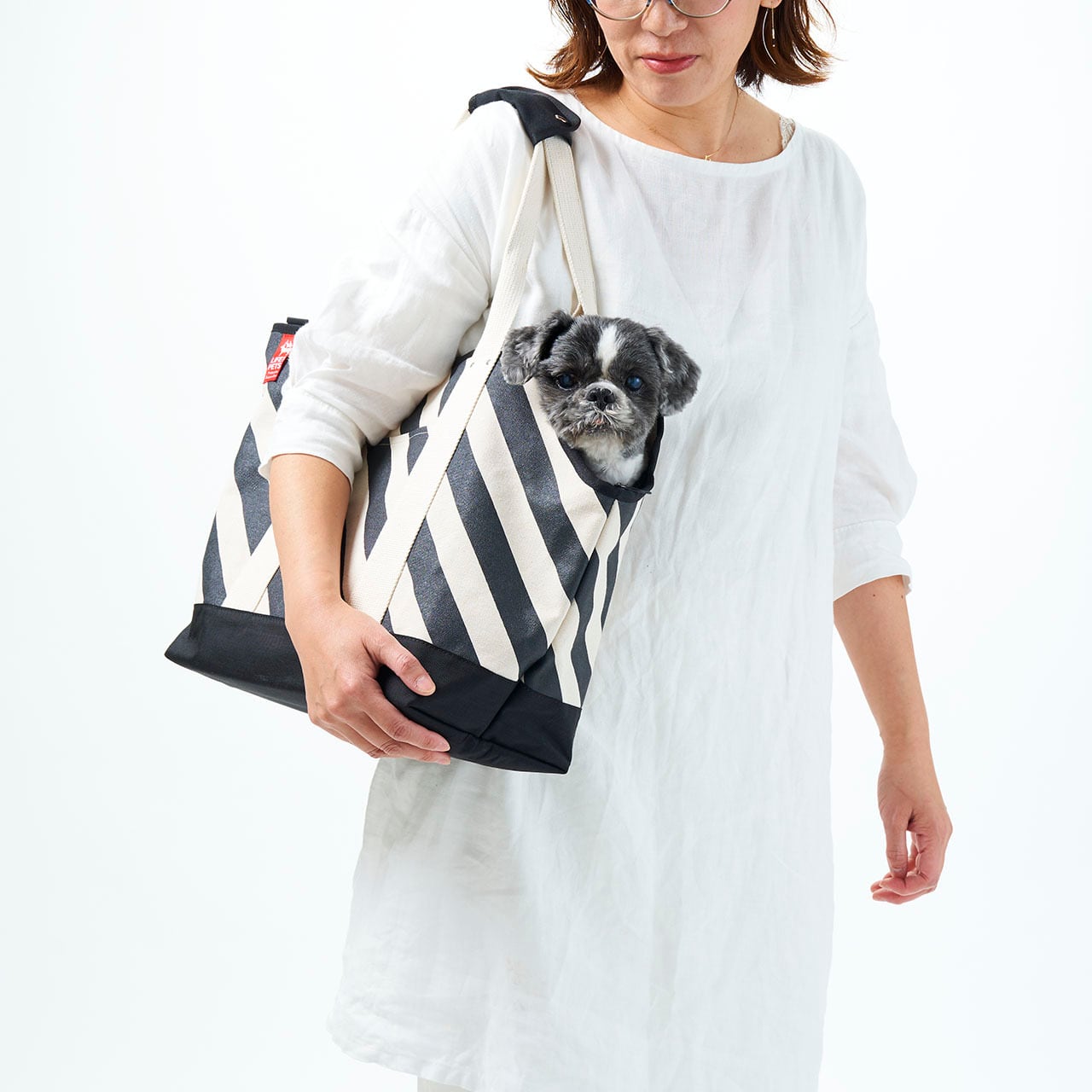 pet carry bag L / black x stripe ペットキャリーバッグL / 墨 x 縞