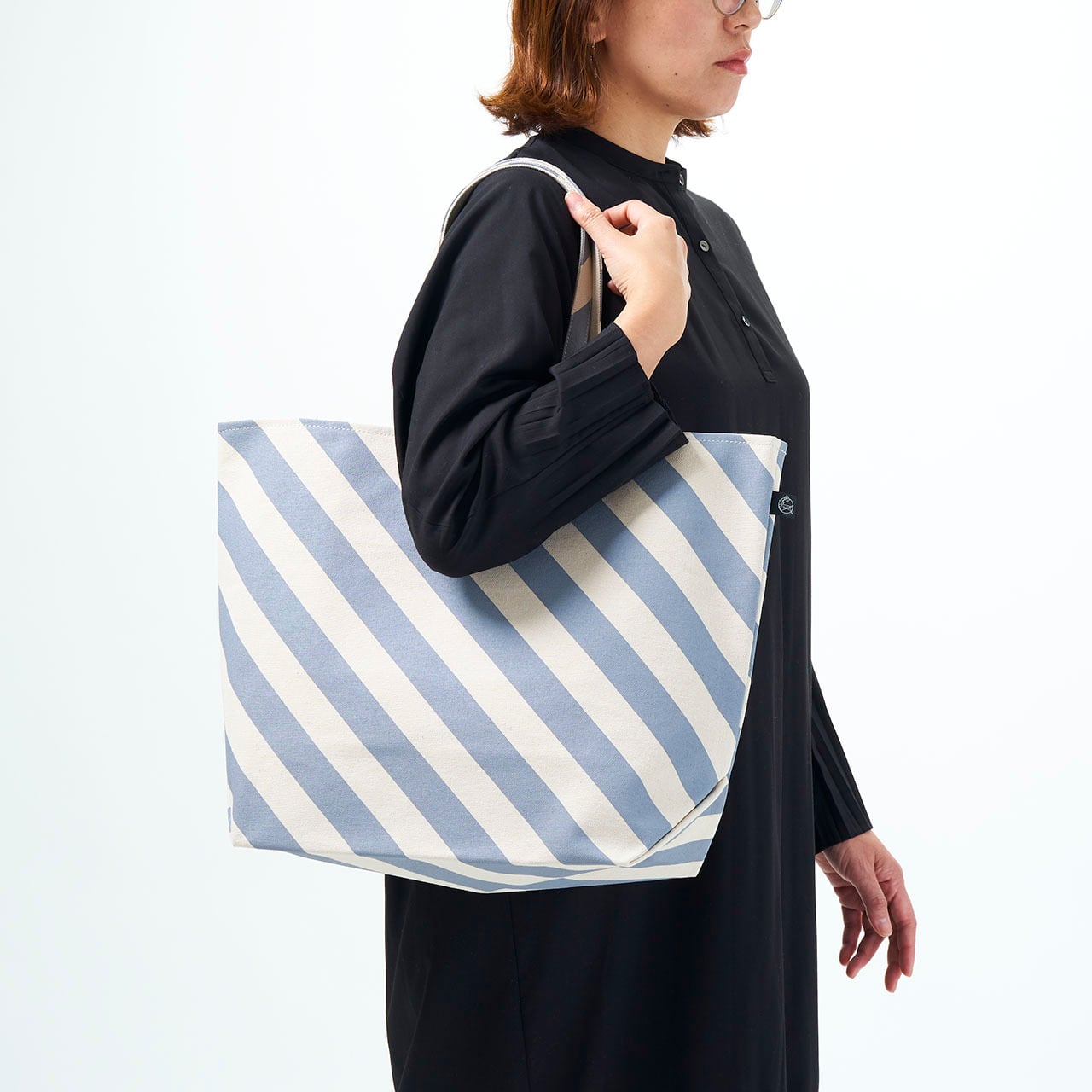 荷物が多めな方にオススメの大きめトート。A3サイズも入ります。シンプルな作りでとにかく軽いのが特徴です。肩にかけるハンドルを細めにして、肩からずり落ちにくくしています。トップを閉じるファスナーは付いていませんが、オプション(有料)でおつけすることもできますので、ご希望の場合はお問い合わせください。